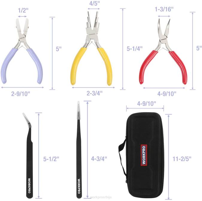 корисним WORKPRO 5 ком клешта за накит, алати за накит укључују 6 у 1 жичане клешта, најлонске клешта за нос, клијешта за савијени нос, шиљасте пинцете, закривљене пинцете оруђе 220075